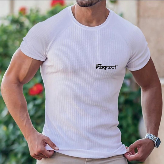 Abbigliamento sportivo da uomo maglietta a coste tinta unita manica corta slim 2024 estate casual o collo tee top uomo tempo libero pullover all'aperto.